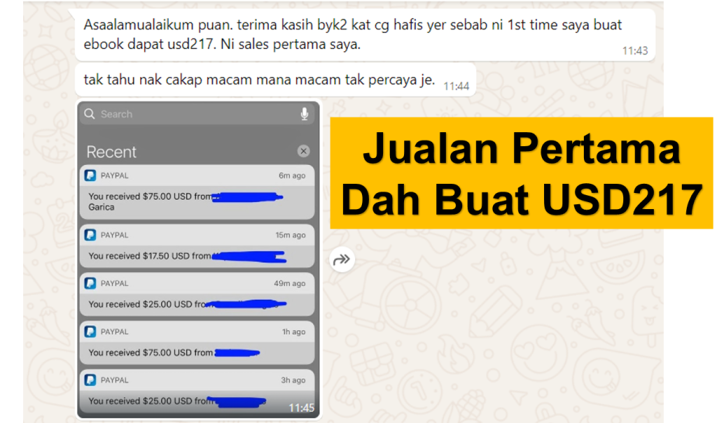 Lepas tu, saya guna satu teknik & strategi promosi yang saya tahu dapat buat jualan PANTAS untuk bisnes produk digital saya ni dan AKHIRNYA saya berjaya buat jualan macam screenshot paypal yang saya tunjukkan tu.